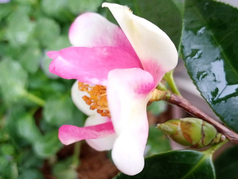 🔍️ツバキ(椿):夢(ゆめ)は、「獅子頭」(寒椿)×「攸県油茶=ユーシ(エ)ネンシス」との交配から生まれた品種です。