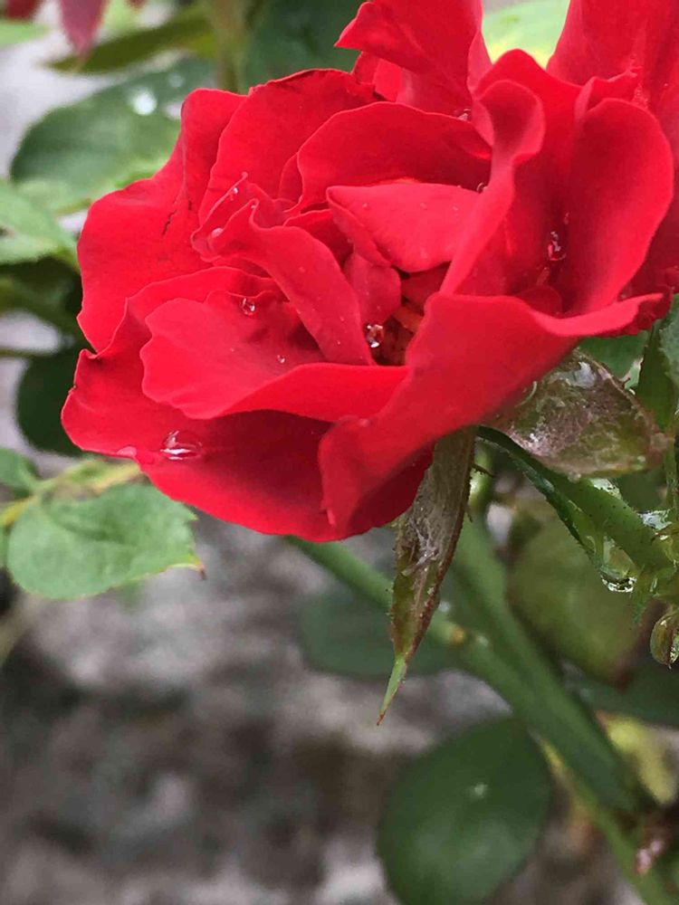 雫をまとって、とっても綺麗な真紅のバラね🌹