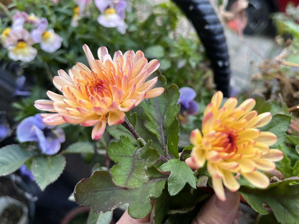 ②今頃秋の寄せ植えの菊?マム?が咲いてきました✨矮性で背が低いタイプです˚✧₊⁎