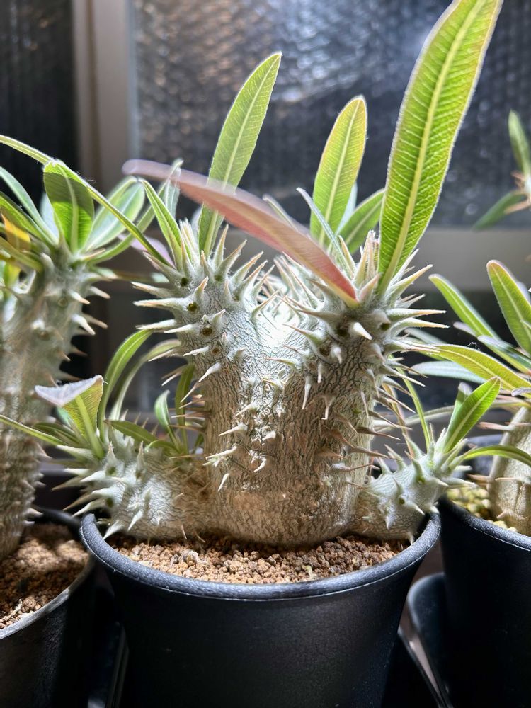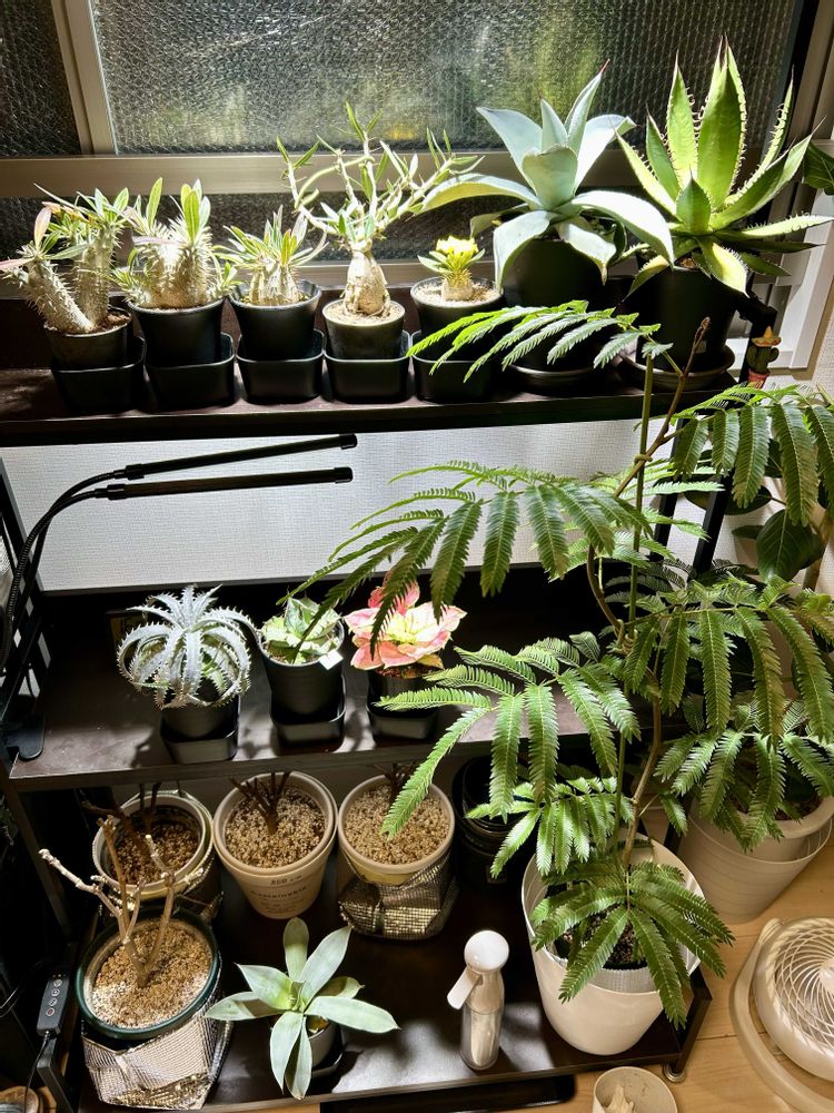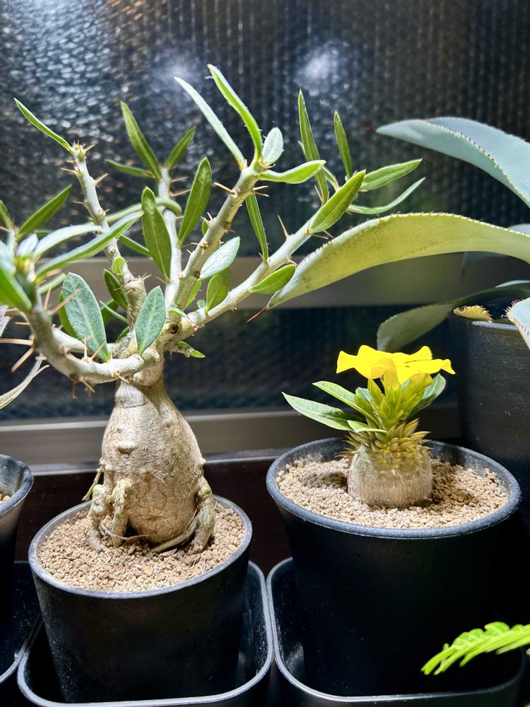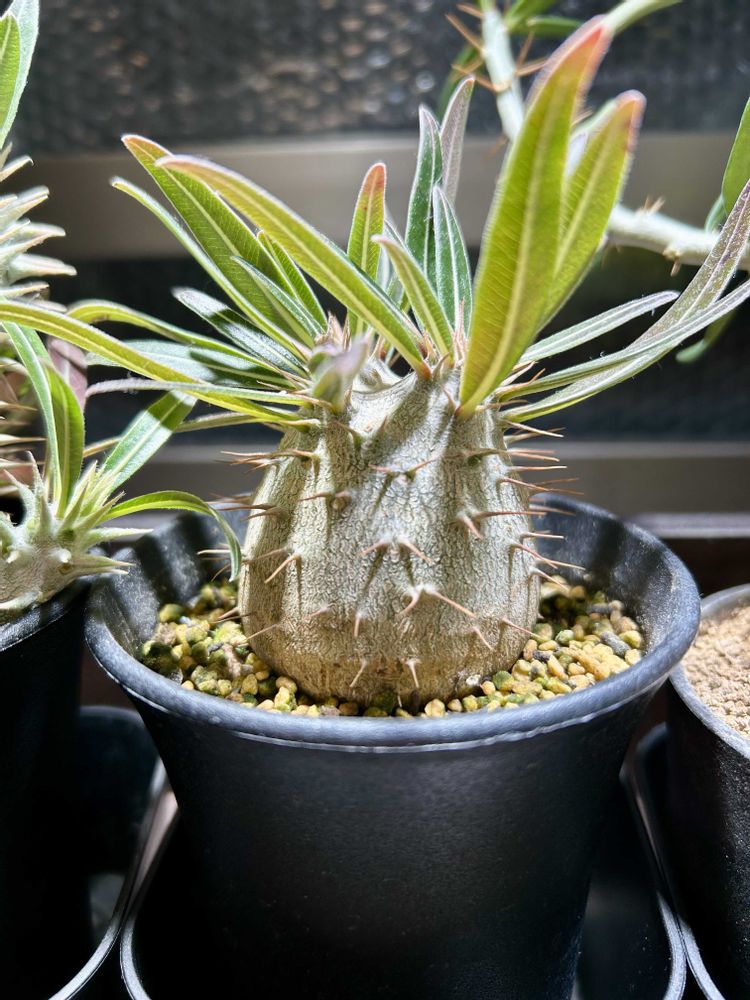 フラワースタンド初号機🪻現在🪻パキポディウム😊シワシワになったので水やりした😊ぷっくりメタボに戻った😊
