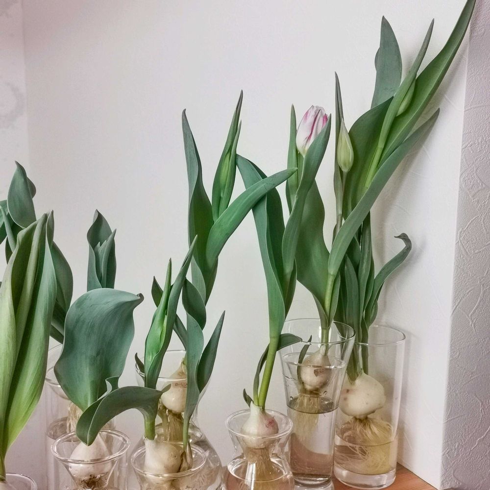 咲き始めましたね🌷🌷背の順に咲くかな?楽しみ😊