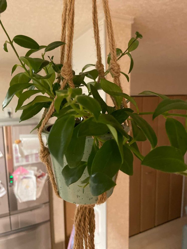 ペペ・オブツシフォリアは真ん丸の肉厚の葉っぱで、このようにつる状には伸びません。また、ペペロミアの花は、紐のような、見た目も地味ーーな花です。蕾になることもありませんよ。
