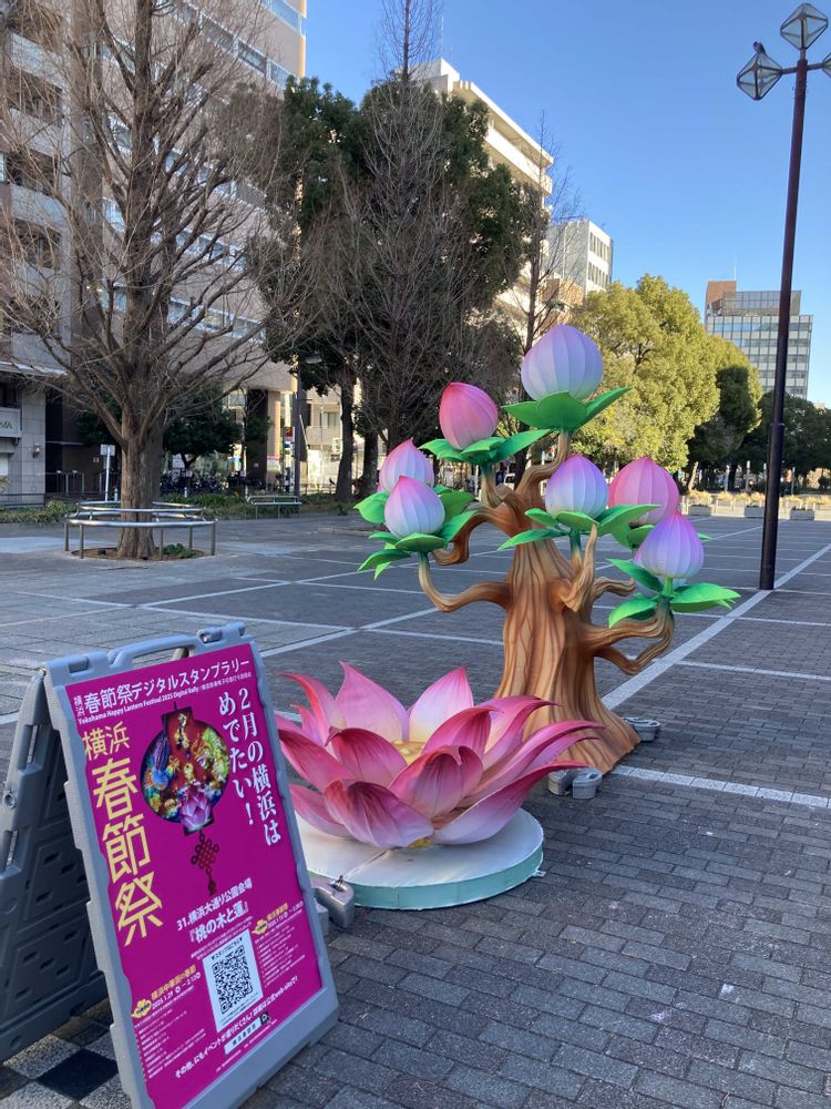 体操終わってのランチで行った伊勢佐木町や大通り公園には…旧正月の㊗️春節の飾り🍑🪷🍑