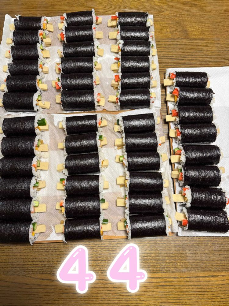 2枚目・今日は1升5合のご飯を炊きました。海苔巻き22本分で、ハーフサイズにしたので44本巻けました😆