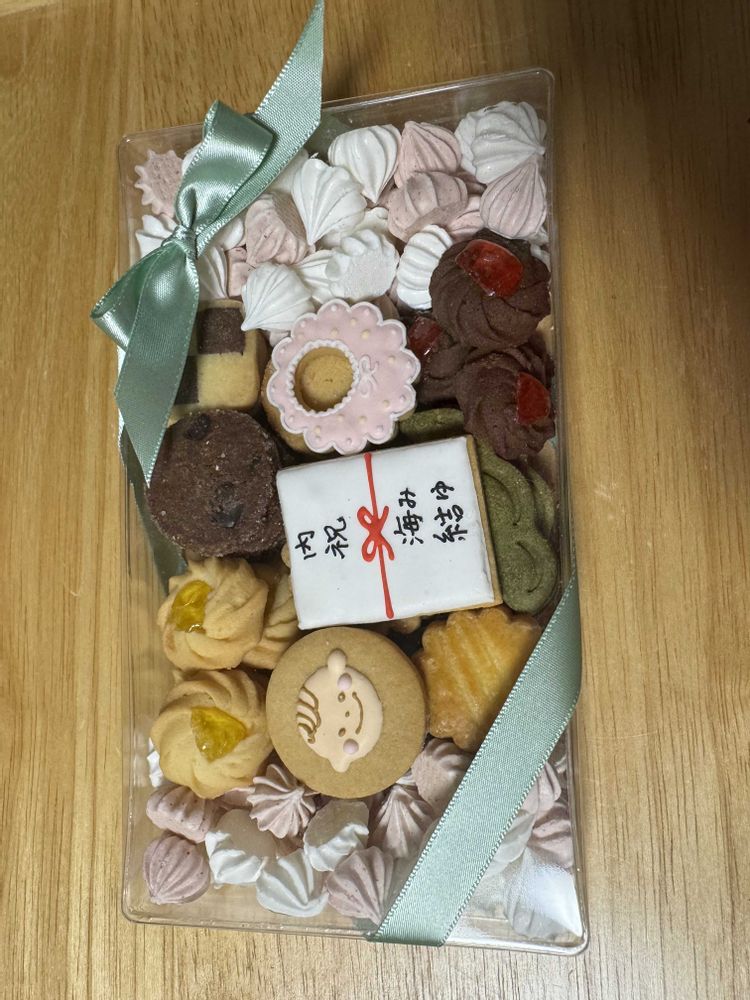 親子で仲良くさせて頂いてる娘さんの15年ぶりの赤ちゃん👶の内祝いを頂きました。全てクッキーです。食べるのがもったいなくて見ていたいくらいです😍