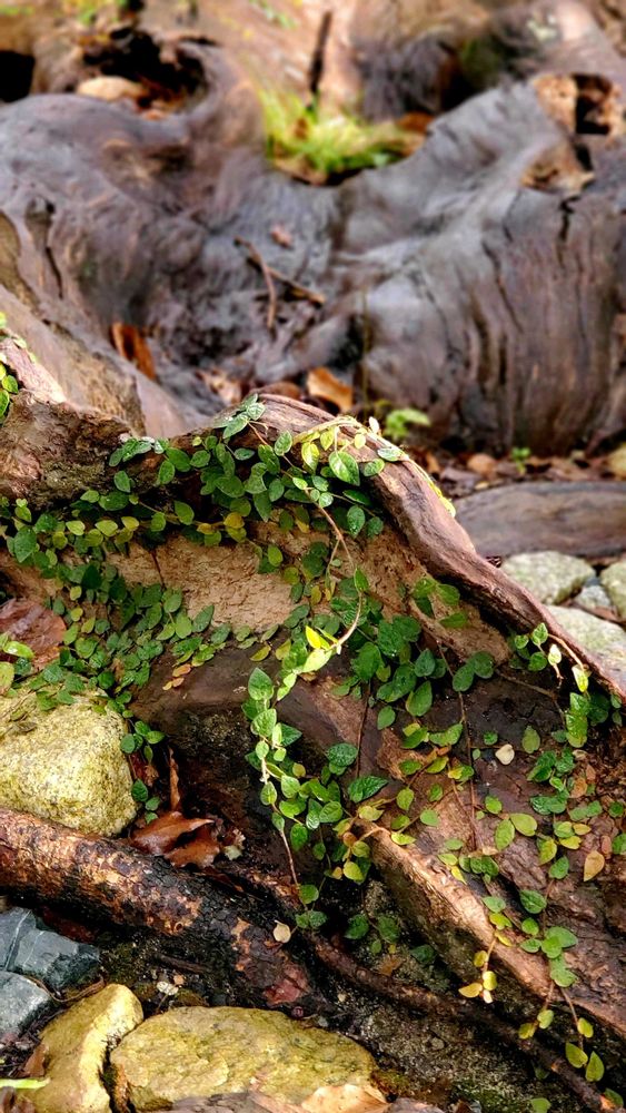 本殿が改修されている間だけの仮殿が注目を集めていますが、自分は赤い太鼓橋(?)のそばに立つ大木の根っこに目を奪われました。力強さや生命力を感じます…