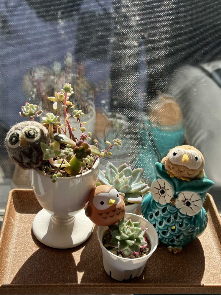 ①窓辺の多肉さんの一部とお久しぶりのフクロウ祭に参加させて頂きますね🦉