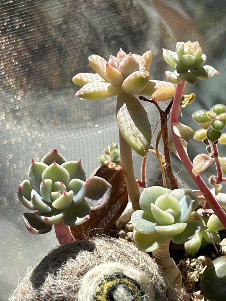 多肉さんは、冬は日当たりが好きなのでしょうか?いくつか花芽らしきものを発見しルンルン楽しみにしています❣️
