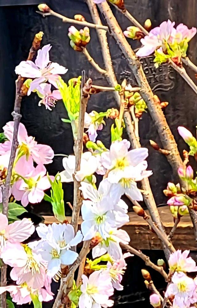 お花屋さんで早咲きの桜🌸を見ました。薄紅色の花が優雅です💖💓😊