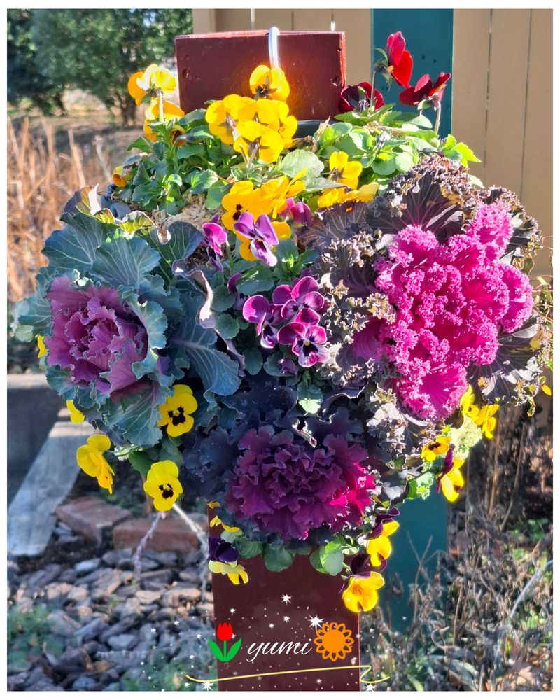 葉牡丹 ハンキングかな🤔お色がちりばめられて(ღ*ˇ ˇ*)。o♡ᔆᵘᵗᵉᵏⁱ♡