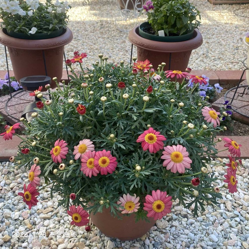 昨年の🌱サンライズピンクも軒下で大丈夫🙆🏻♀️だったのでさきざるの小庭(はだよ)マーガレットの鉢移動はしなくても大丈夫と思われます🐒🎶