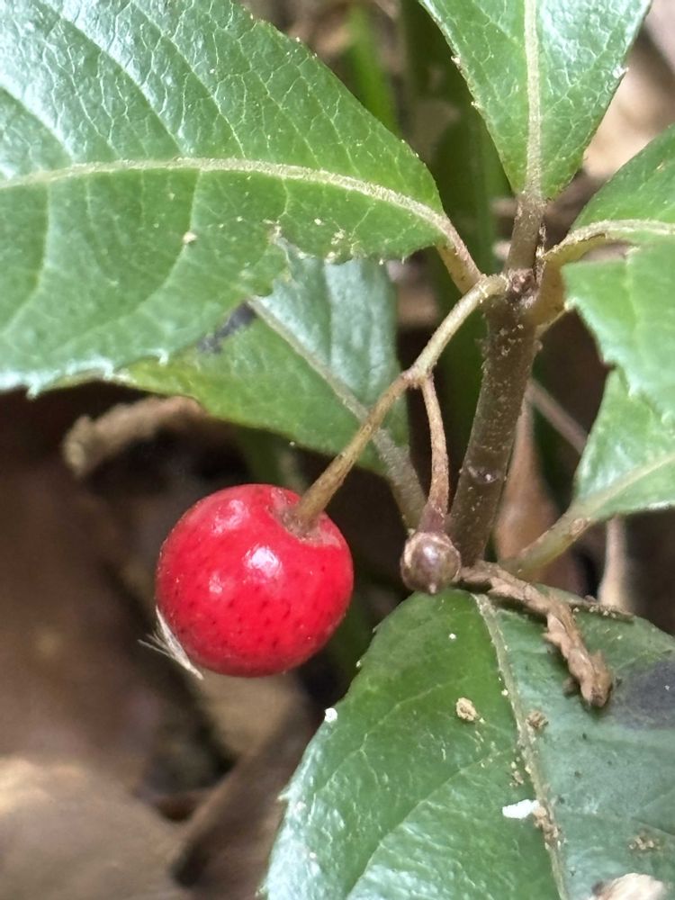 地元の小さな社に続く林縁に赤い実が目をひきました。