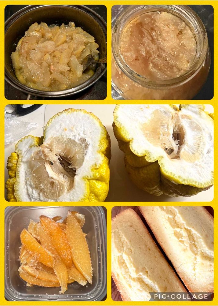 頂いた直径23cmの大きなオニユズ🍊3回茹でこぼした後ジャム ピール 焼菓子に変身しました🥷