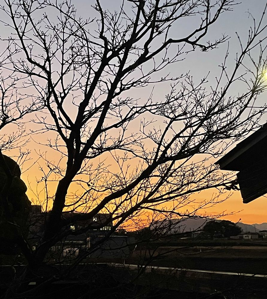 色が変わっていく空とそれに染まっていく樹の影、美しく澄んだ空気がきれいなのだろうなぁと感じます。