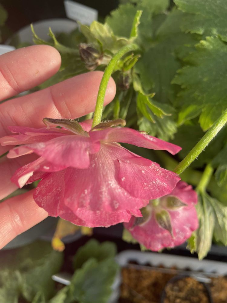 ラックスハウス開けたら花に霜が😱