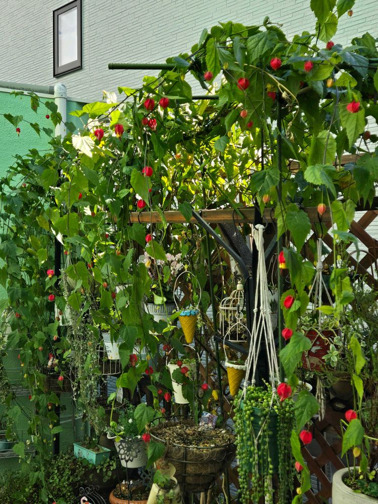 でも猛暑の時にはアブチロンの下に置いてあったお花等は日焼けせず助かりましたよ🤭