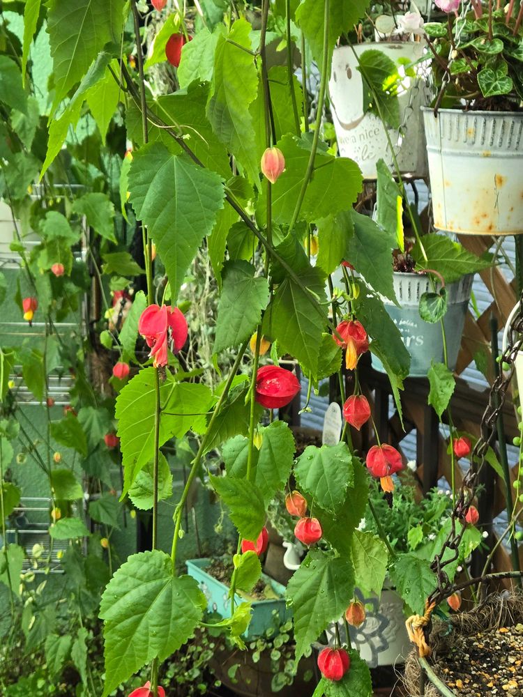 我が家のアブチロンの紹介です🥰 赤と黄色のベル?🙄🔔何とかと言う可愛い名前を教えて貰ったのにど忘れ〰️🤣