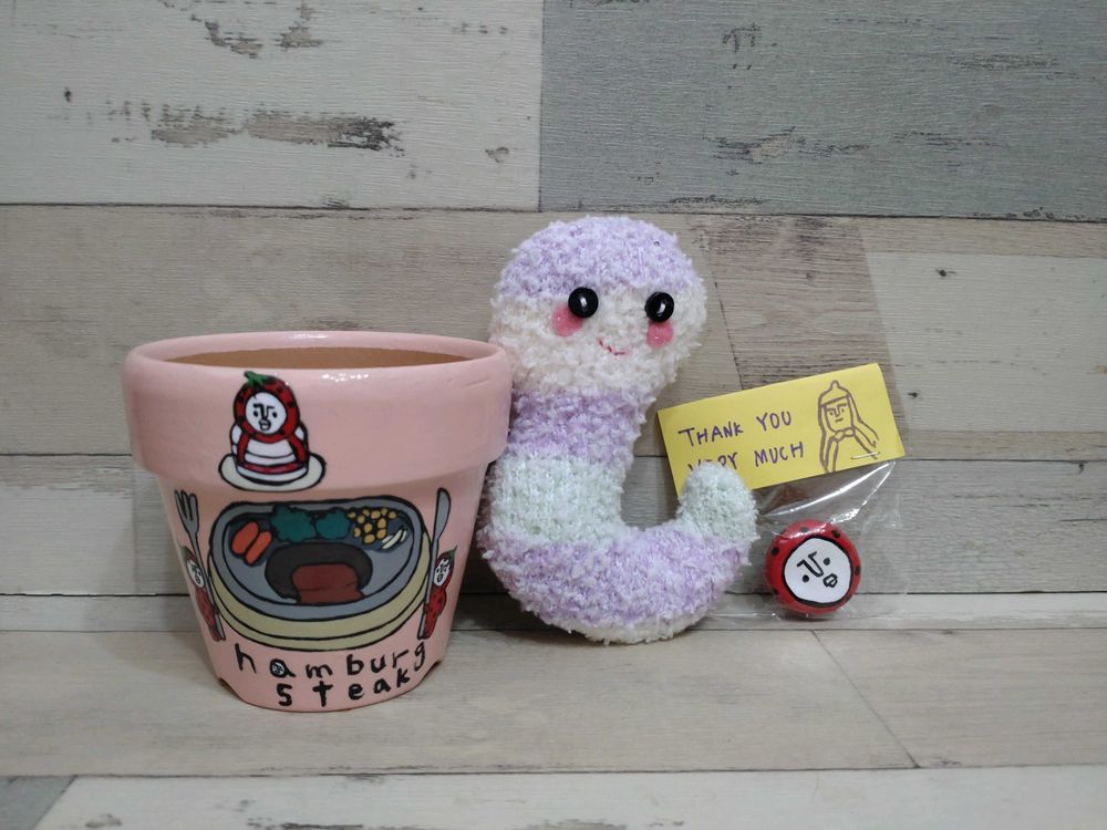 えつこさんリメ鉢&まつぴよさんのヘビちゃん🐍