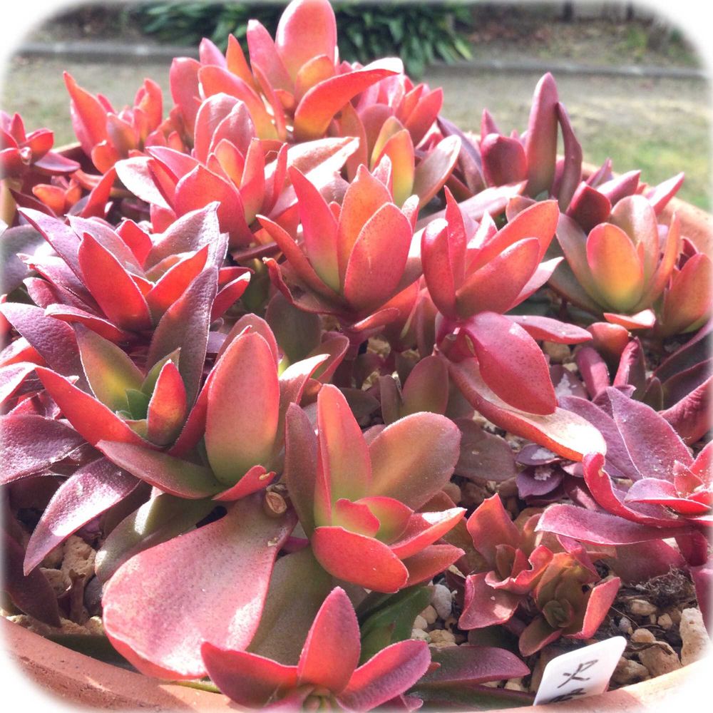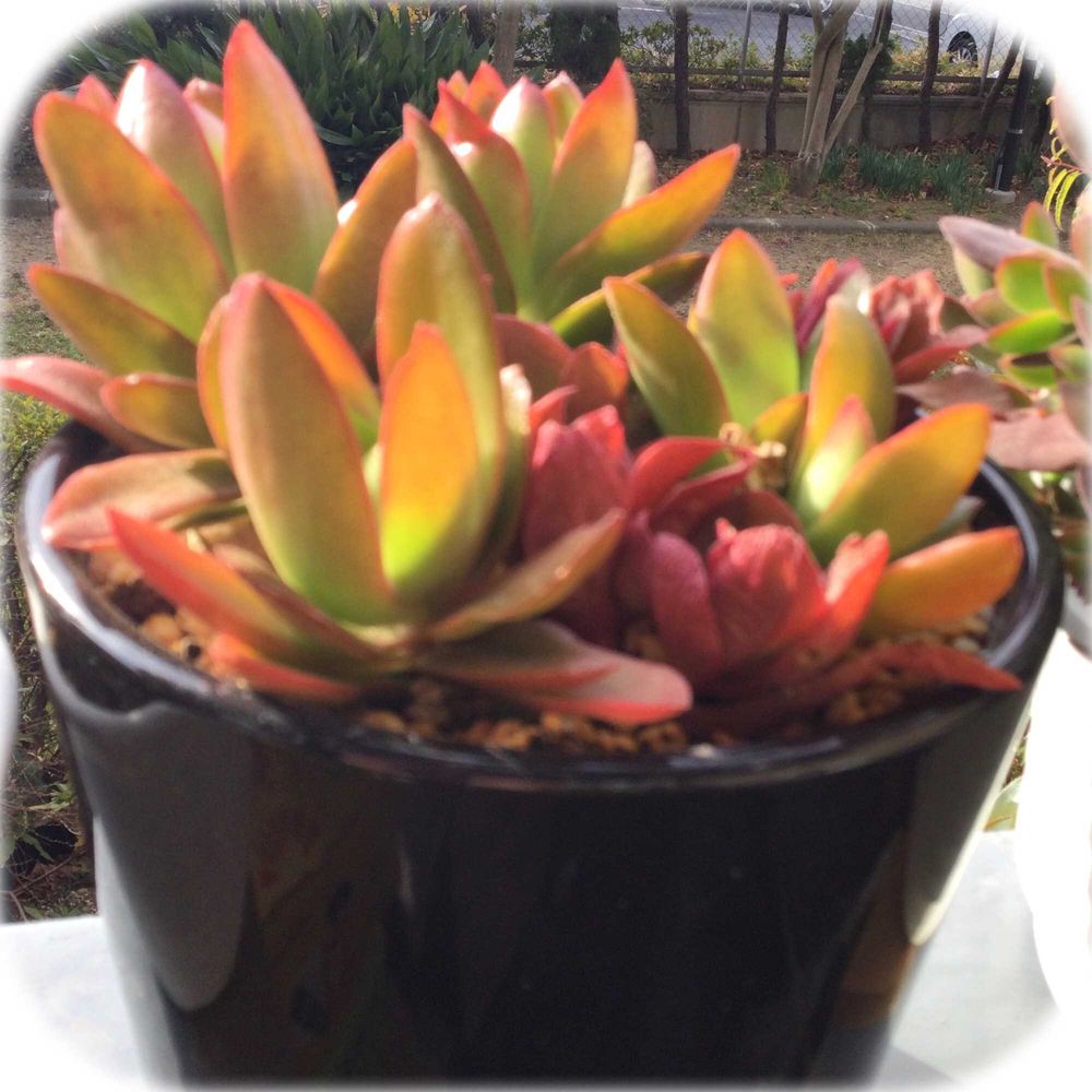 我が家のベランダ組多肉さん頑張っています。真っ赤かな火まつりさん、遅れて色づき始めた火まつりさん😊