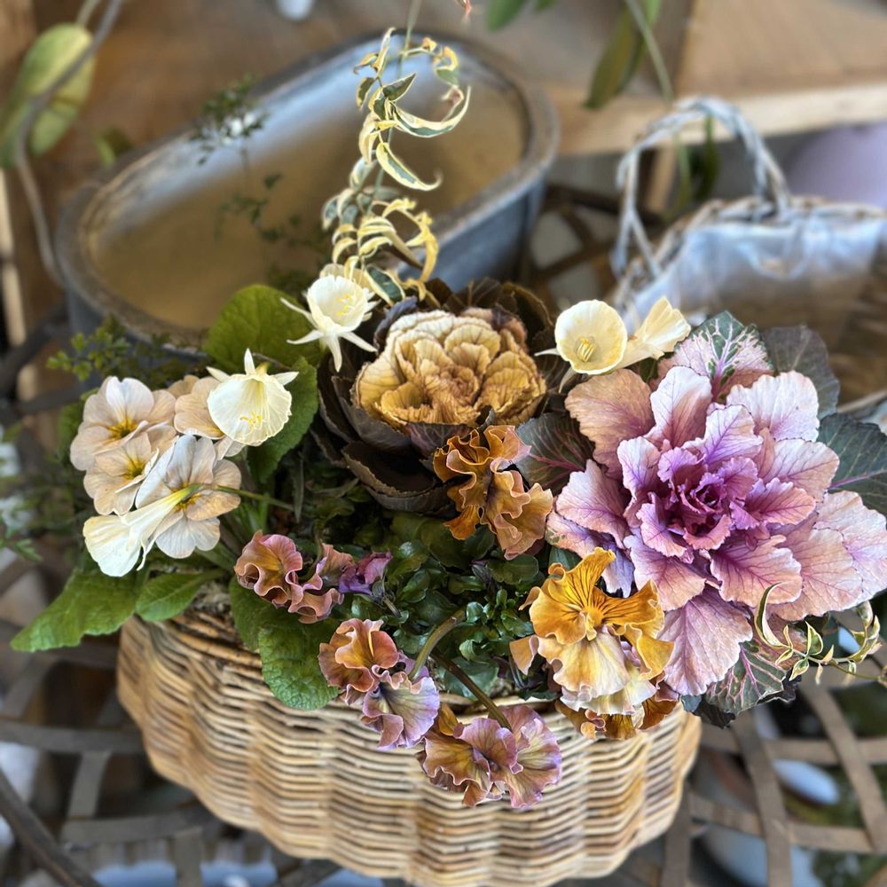 最後にブリコラージュというやり方で寄せ植えを作る体験教室で一鉢作りました。