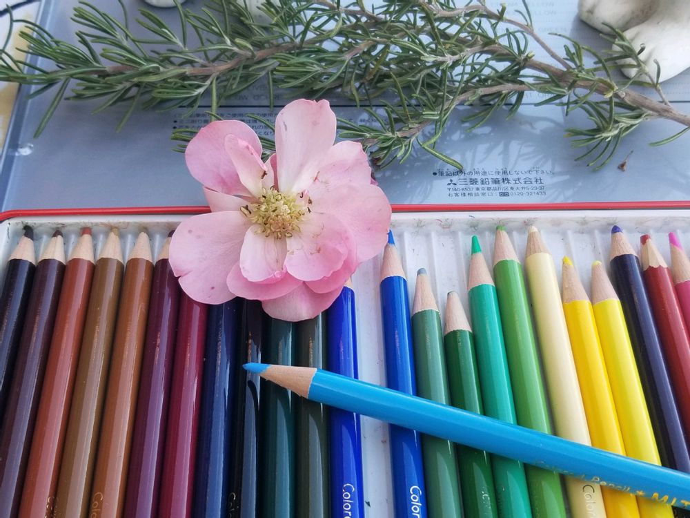 今日は日差しがポカポカ☀お庭で久しぶりの塗り絵🎵😊