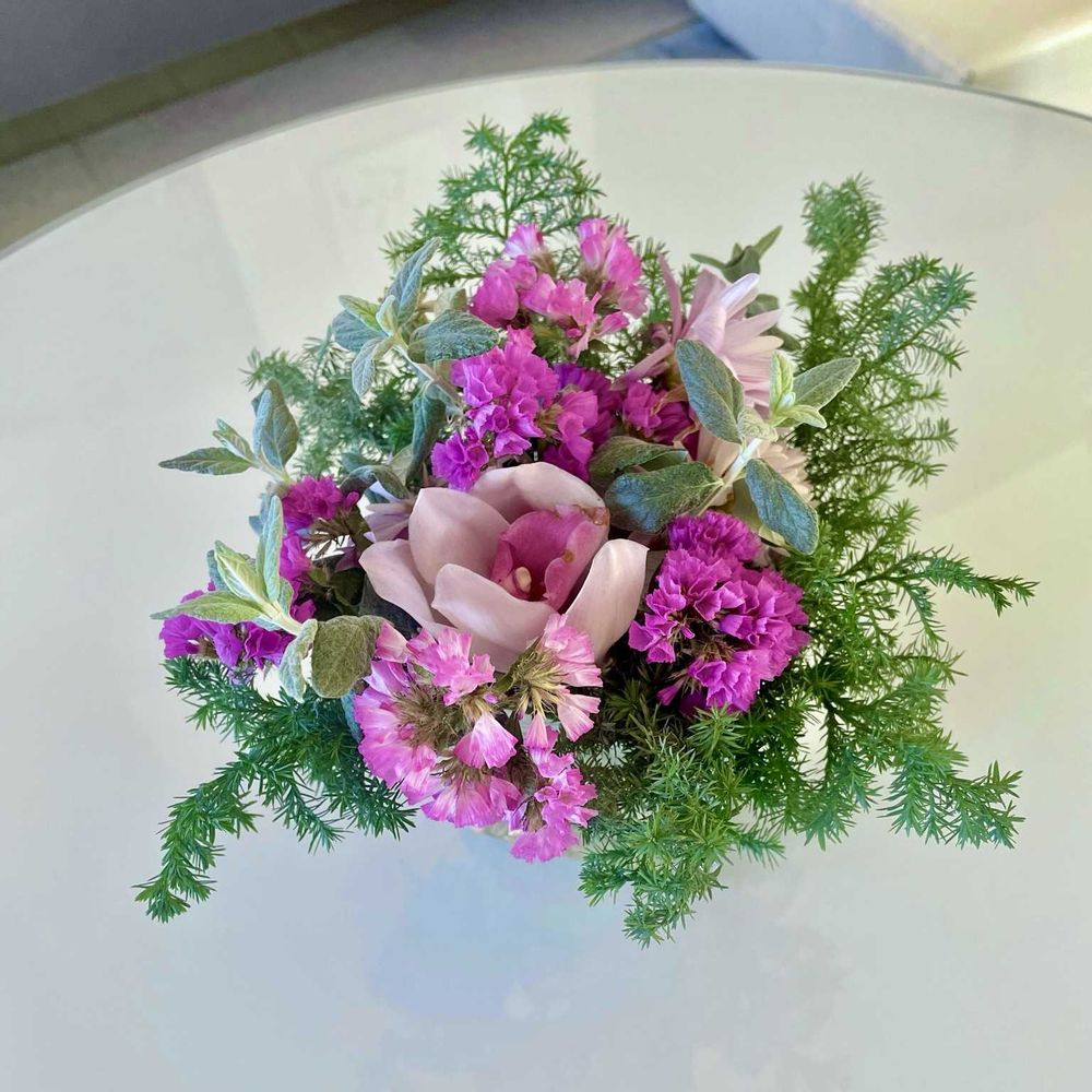 お正月の花、とうとうこんな小さなテーブルフラワーになりました😊