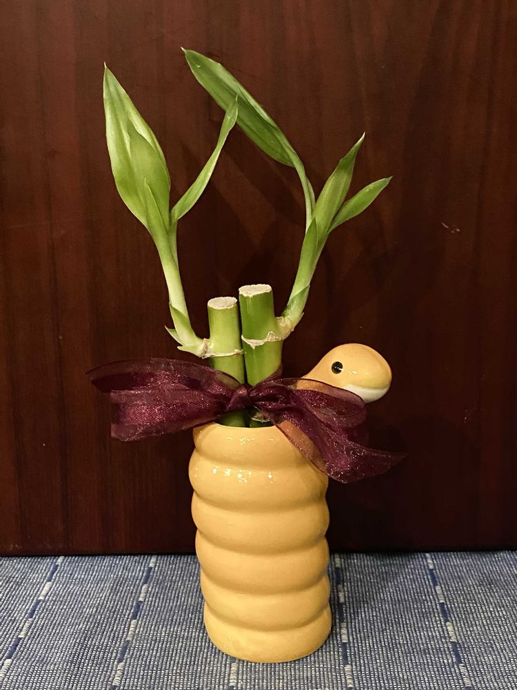 ラッキーバンブーとかミリオンバンブーという名前で売られている、ドラセナ•サンデリアーナ。