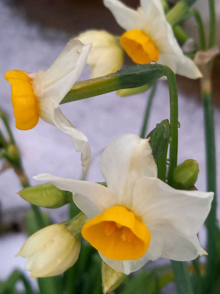 さん、おはようございます🤗雲☁️ってます。水仙も、雪に折れず良かったですね~🙆✌️💓やっぱり新年を迎え春を告げる花ですので私達は元気貰えますね!