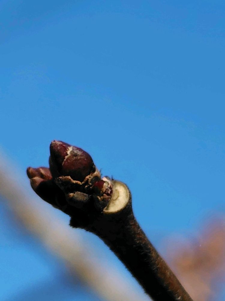 冬芽は卵形で枝と同包で縁に毛の生える芽鱗8〜12枚に包まれている。