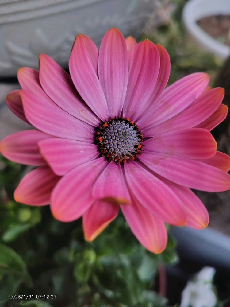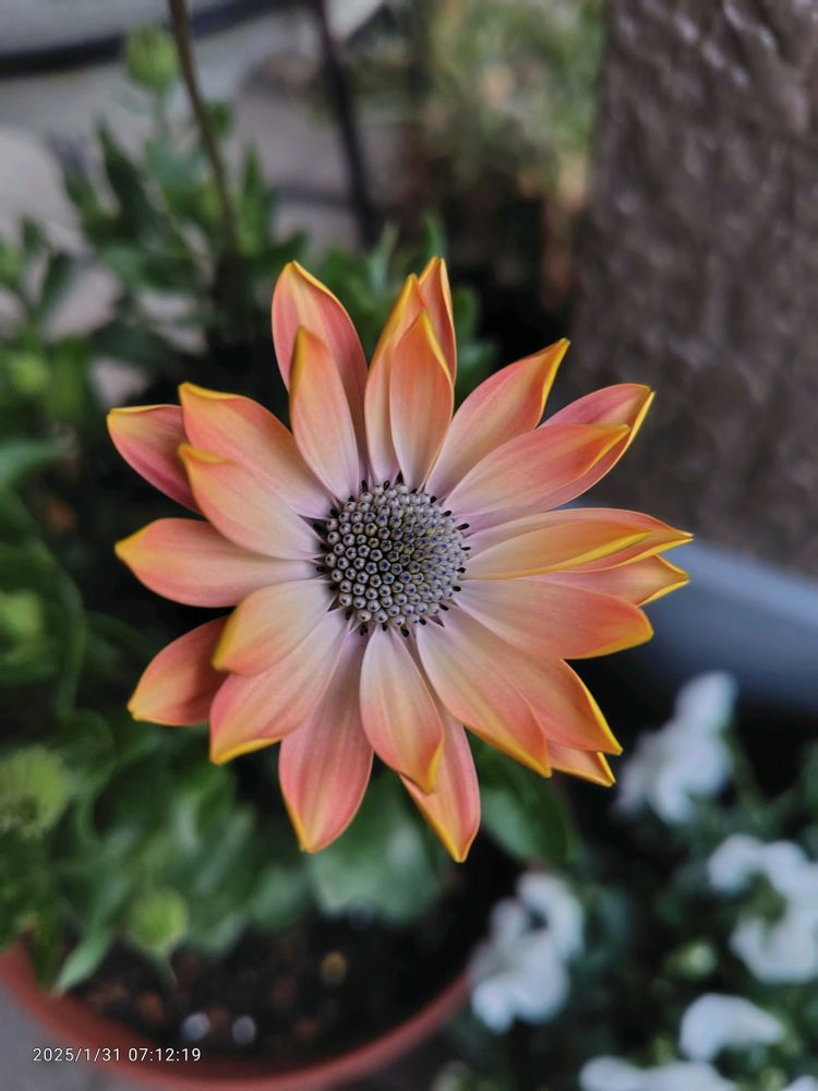 庭のオステオスペルマムとビオラ🩷🧡💜