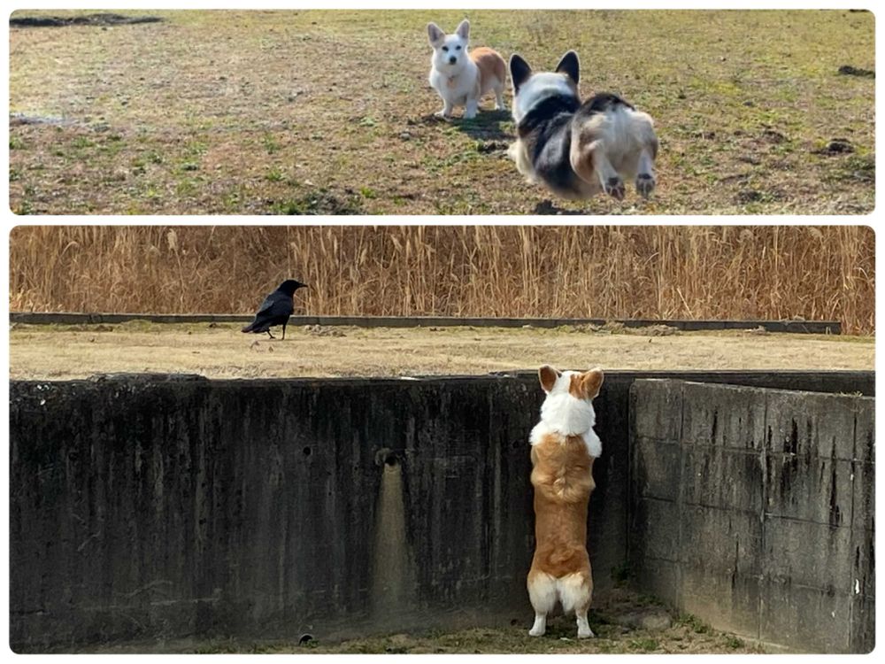 カラス🐦⬛におちょくられるはちみつ🐶🍯の🍑🍑