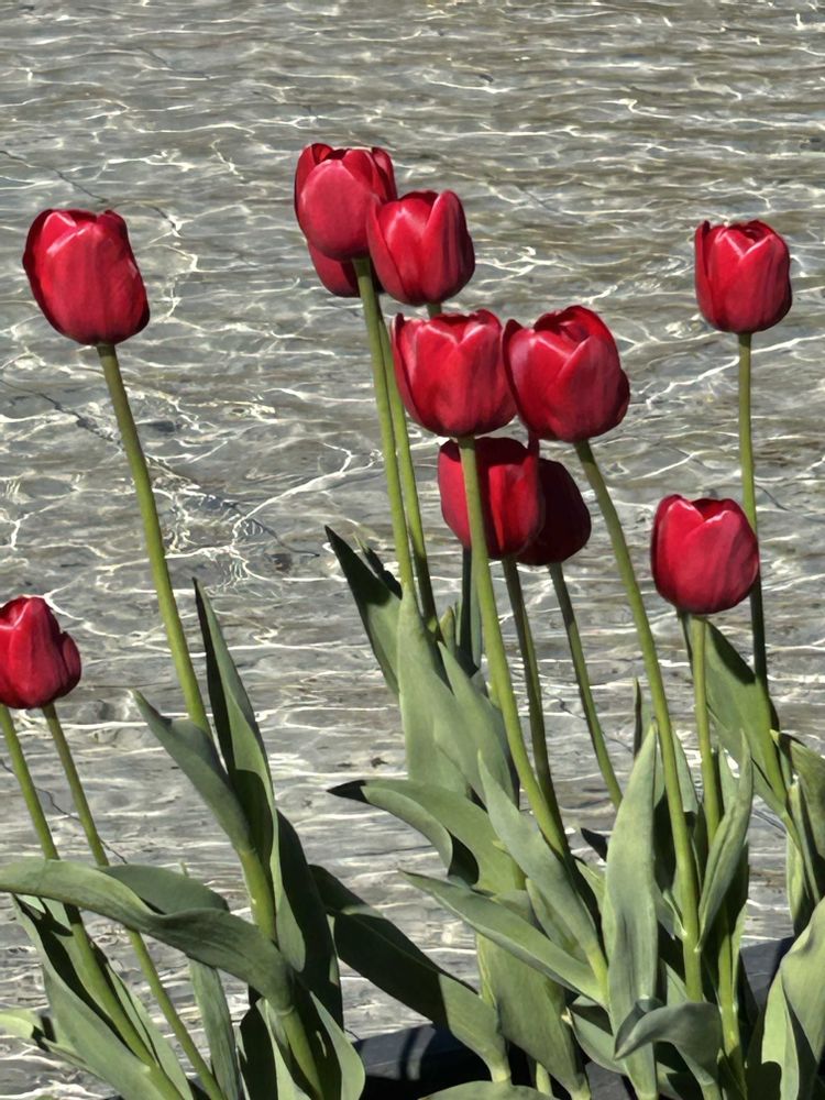 普通のチューリップは開花が4〜5月ですが、冬から早春に温度調整して咲くようにしたものです