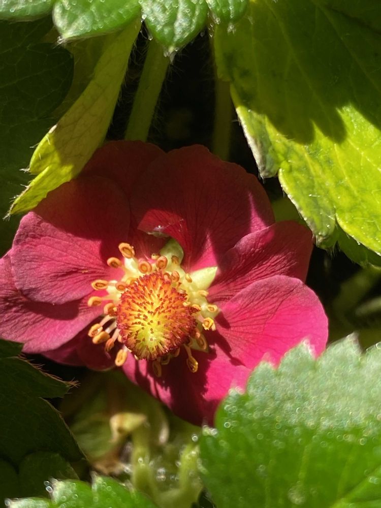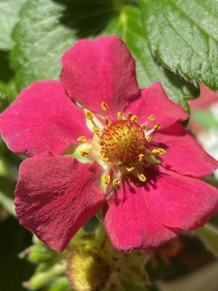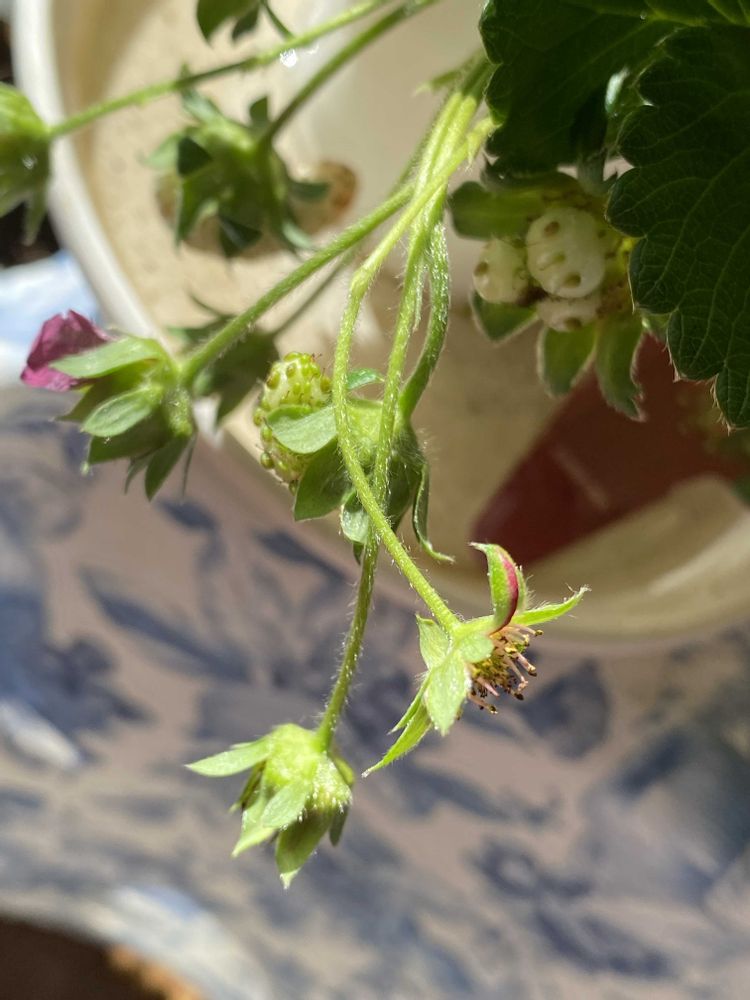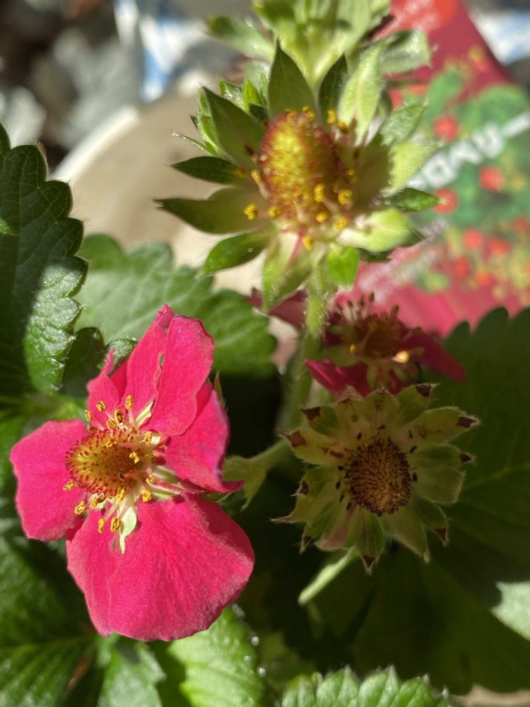 お花の色も🩷イチゴ🍓色ですが、もう実が付いていて、これから実がたくさんできそうです♪