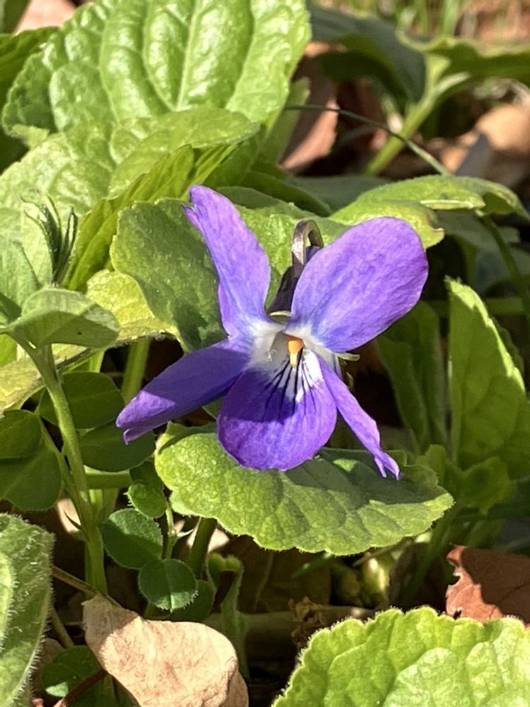 落ち葉の中から今年初めてのすみれの花が咲いていました