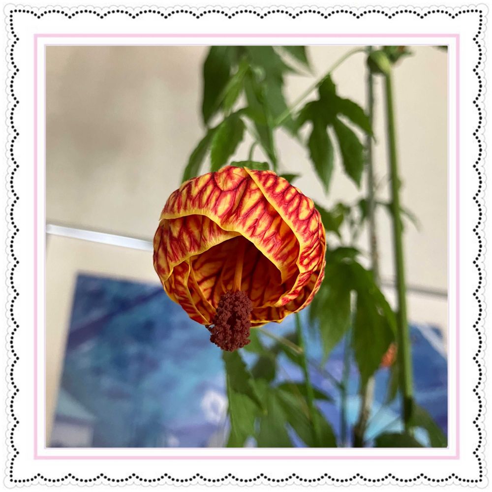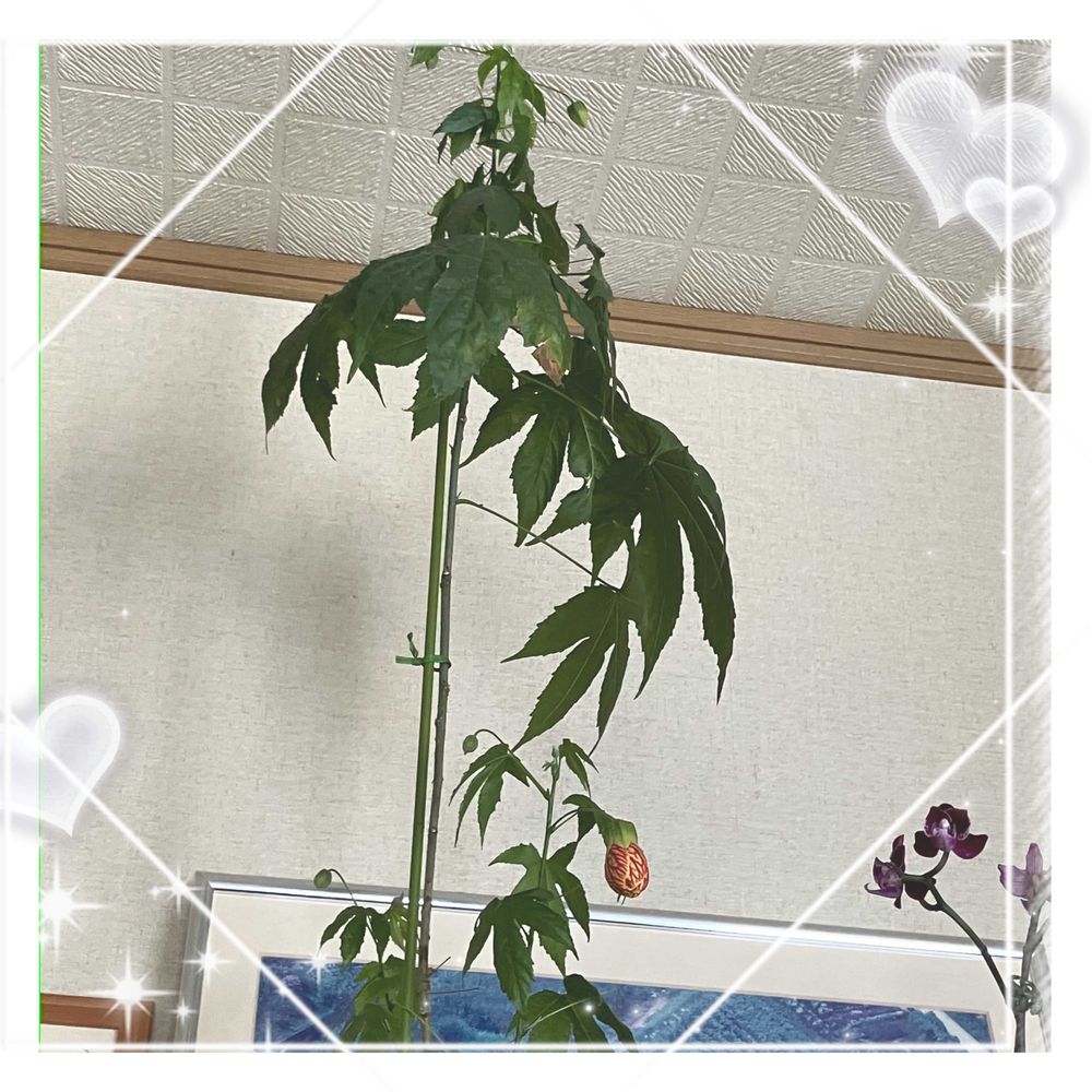 玄関先に置いてたアプチロン部屋の中に移動したら蕾がついて咲き始めました☺️