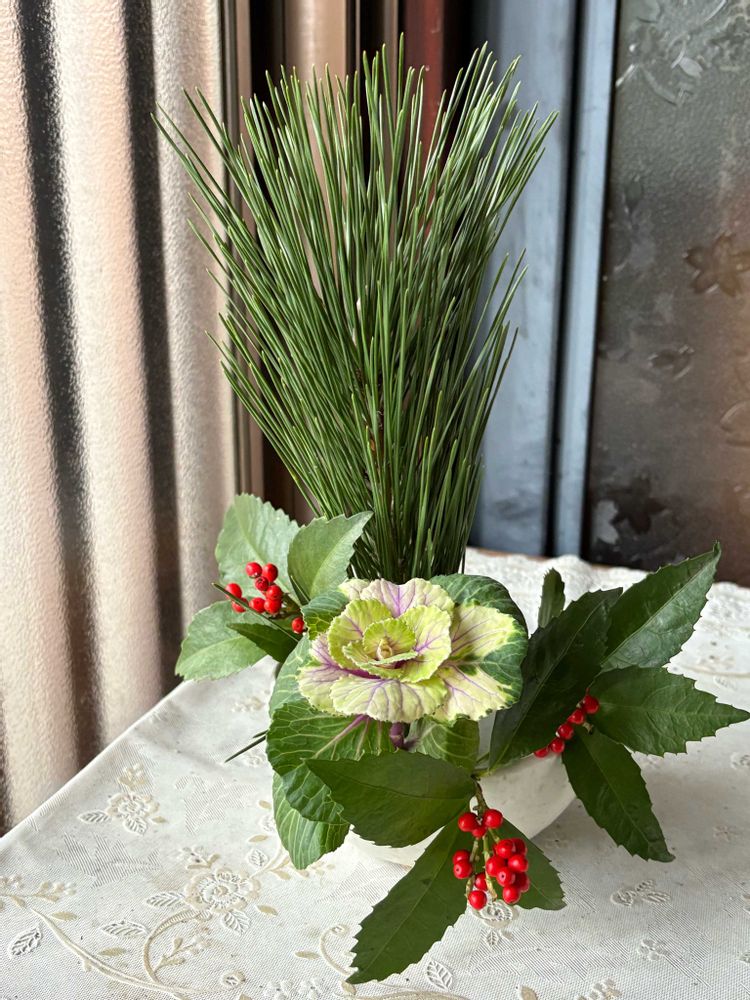 2枚め:正月の花の一部、可哀想なのでおっ立てで