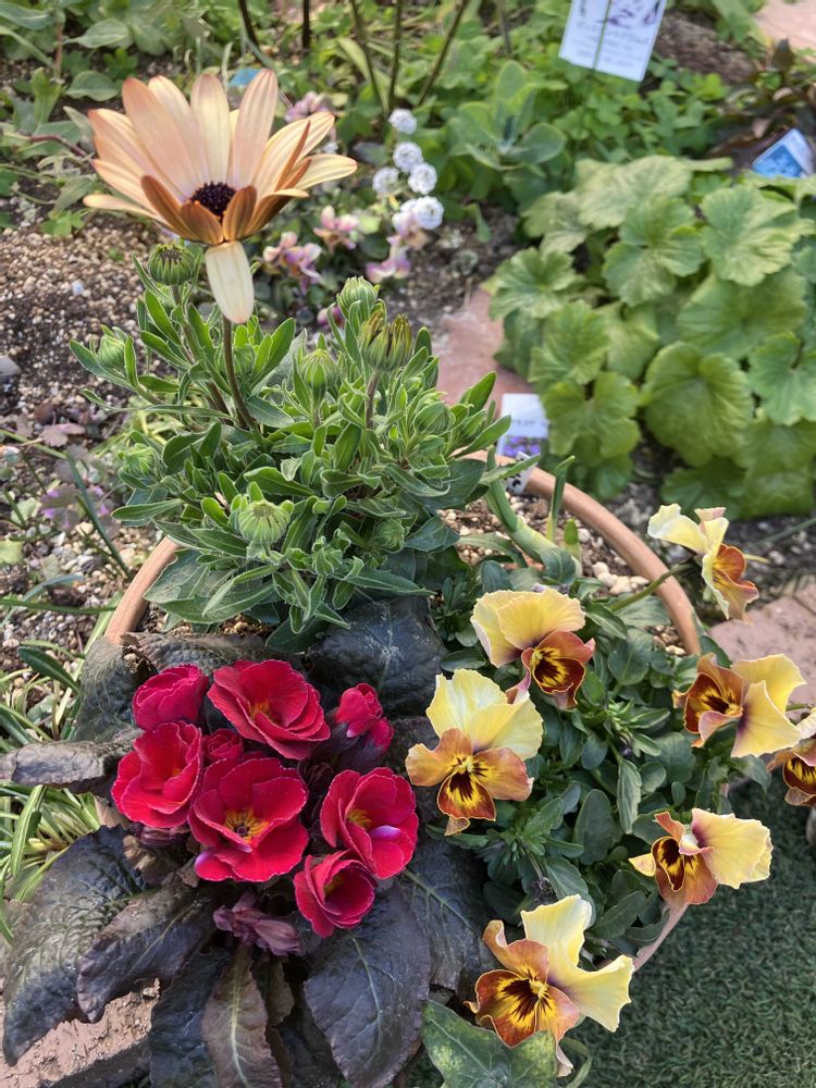 寄せ植えいっぱい出来ていますね。春っぽくなって羨ましいわ❣