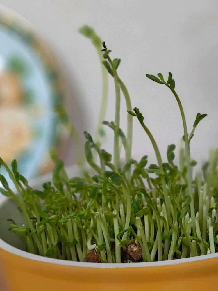 豆苗、さらに伸びて明日には食べないとすごいことになりそうです😁🌱🌱🌱