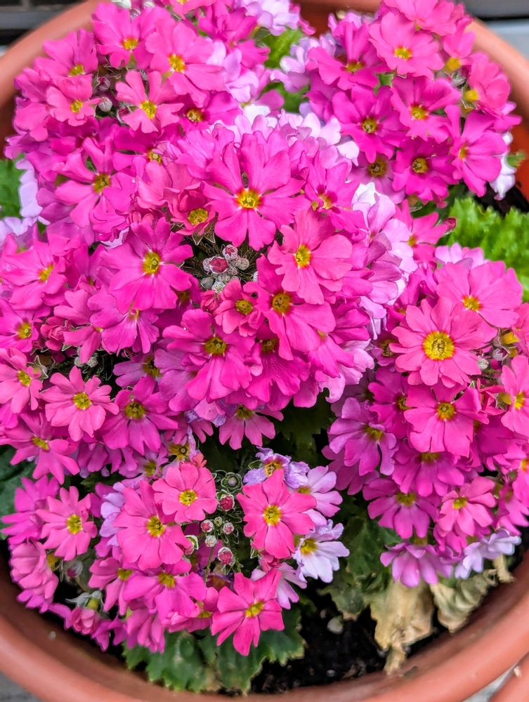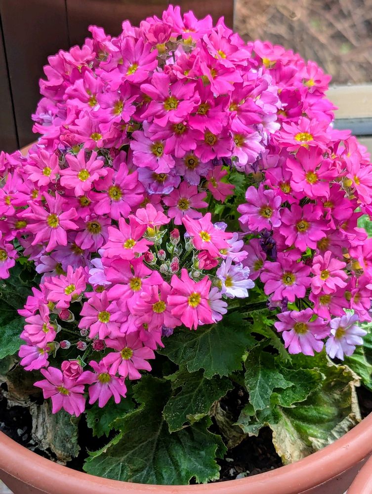 ピンクのプリムラマラコイデスさんモリモリですね~😆