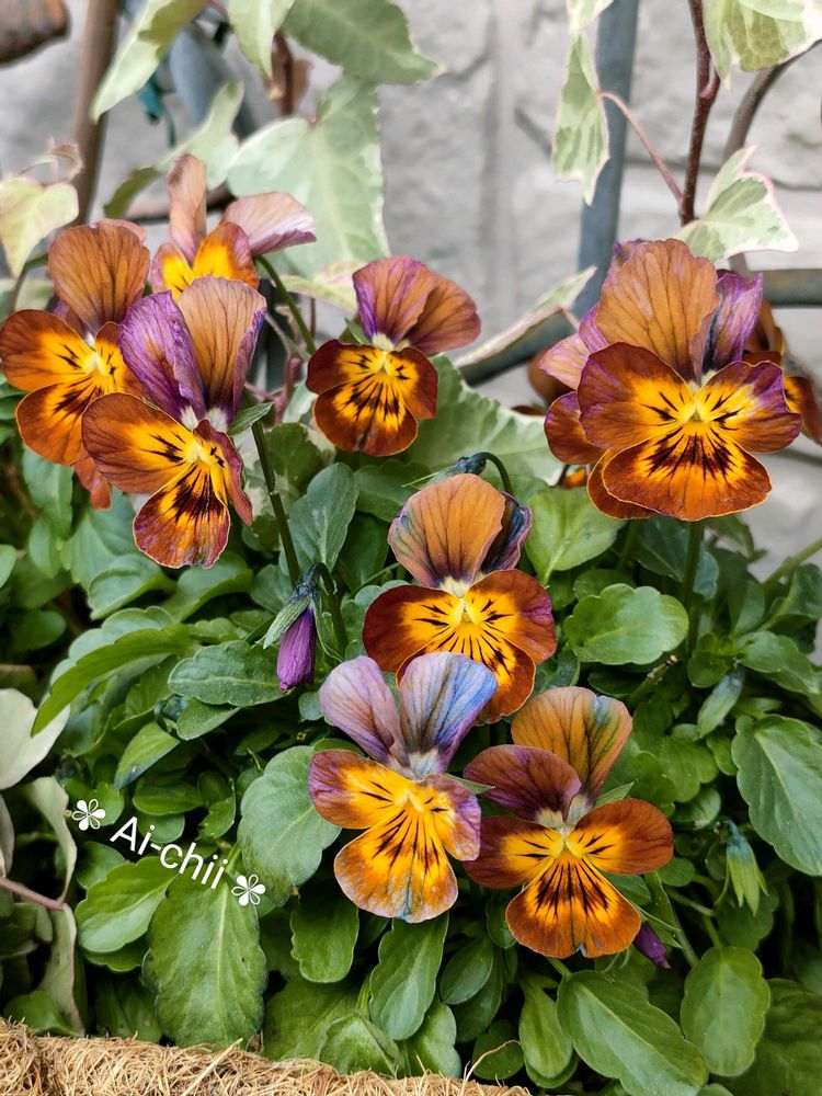 何とも魅惑的なさび色のビオラさん💛🤎💙