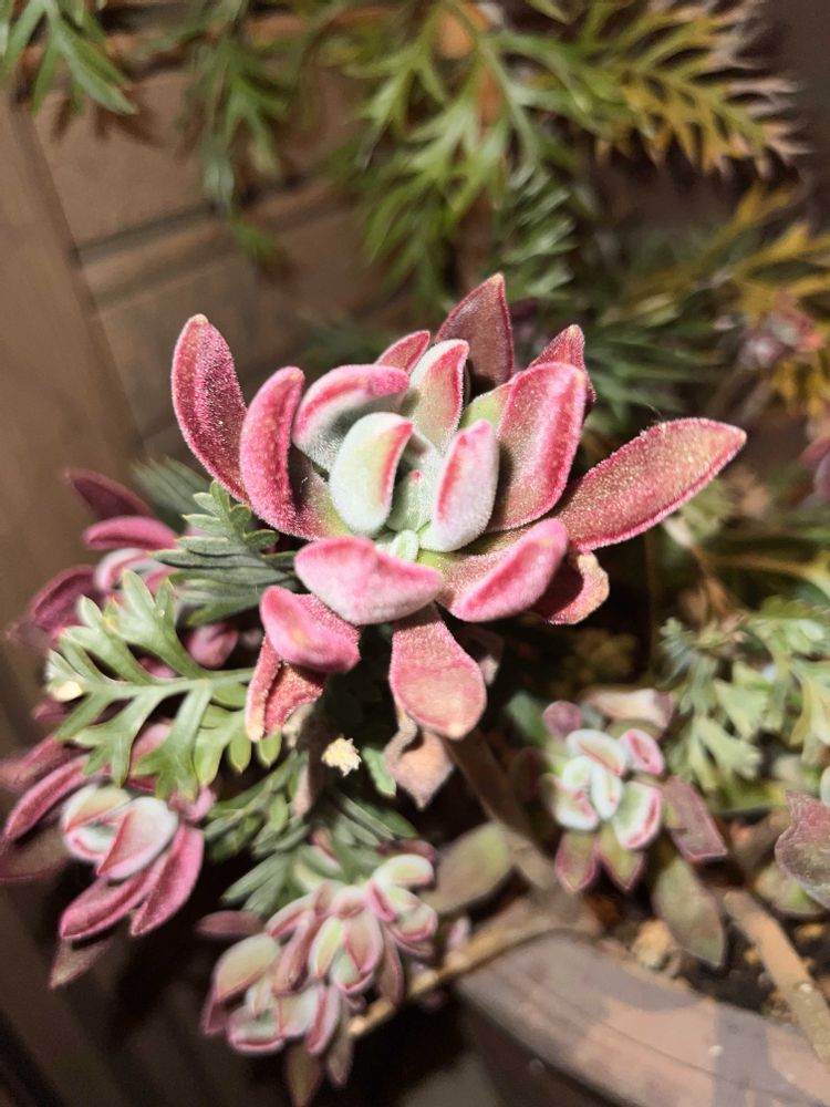 こんばんは🌙玄関前の多肉ちゃん キレイに紅葉して来ました✌️今 撮ったので ちょっと暗いかな📸
