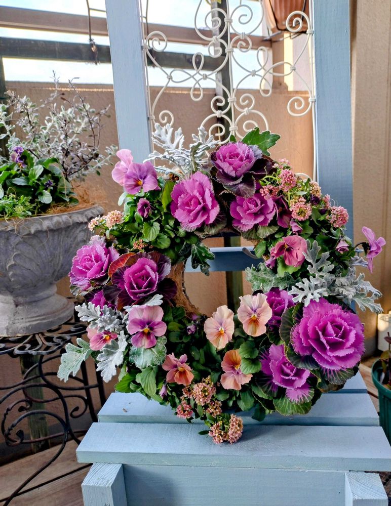 ベランダガーデン,花のある暮らし,ハボタンのリースの投稿画像