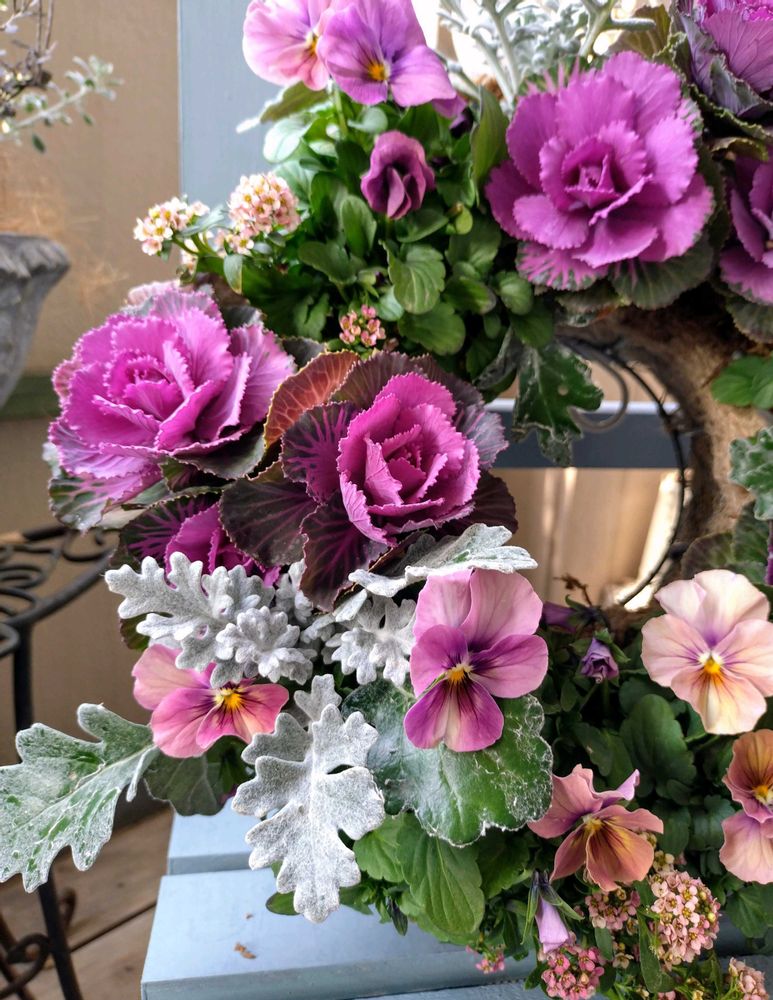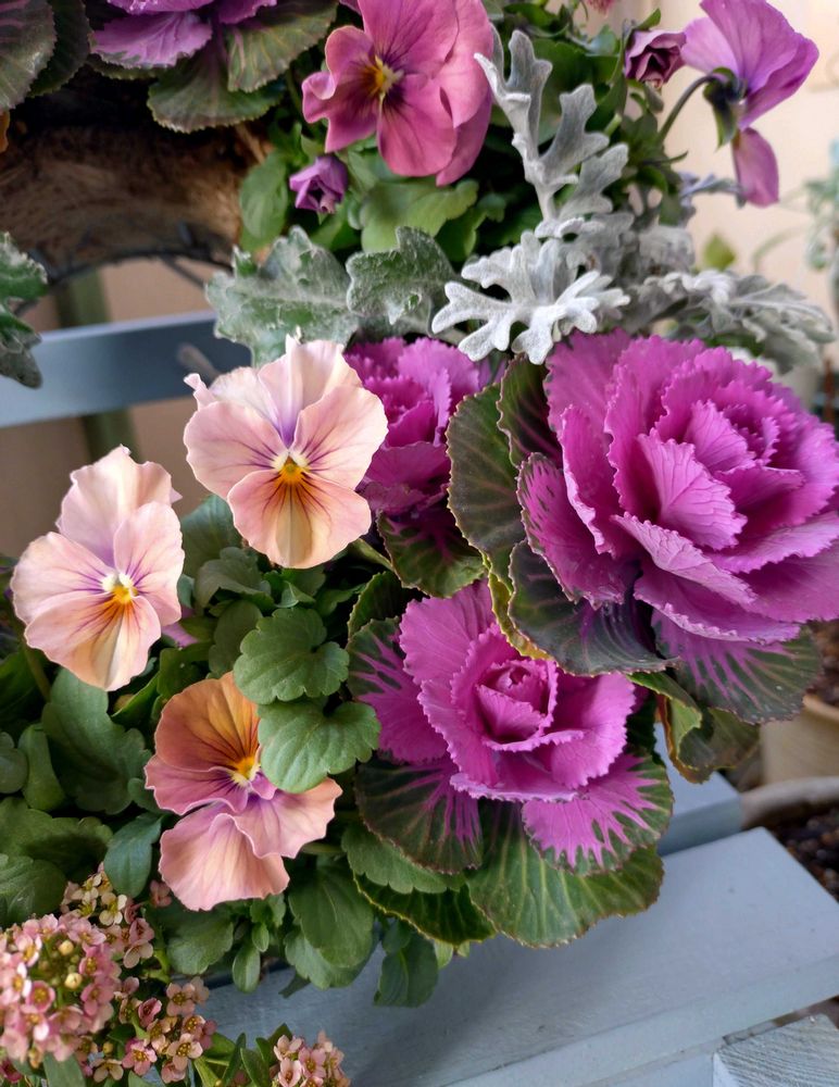 葉牡丹のお色とビオラやアリッサムもマッチしてパッと明るく素敵です💓