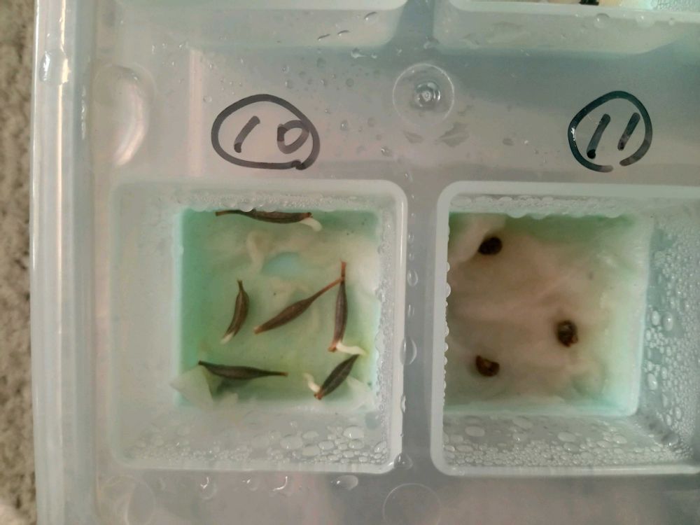 この種まき方法は、割と早めにでるよ。ホットカーペットに置いてるから、余計かな(*´艸`)