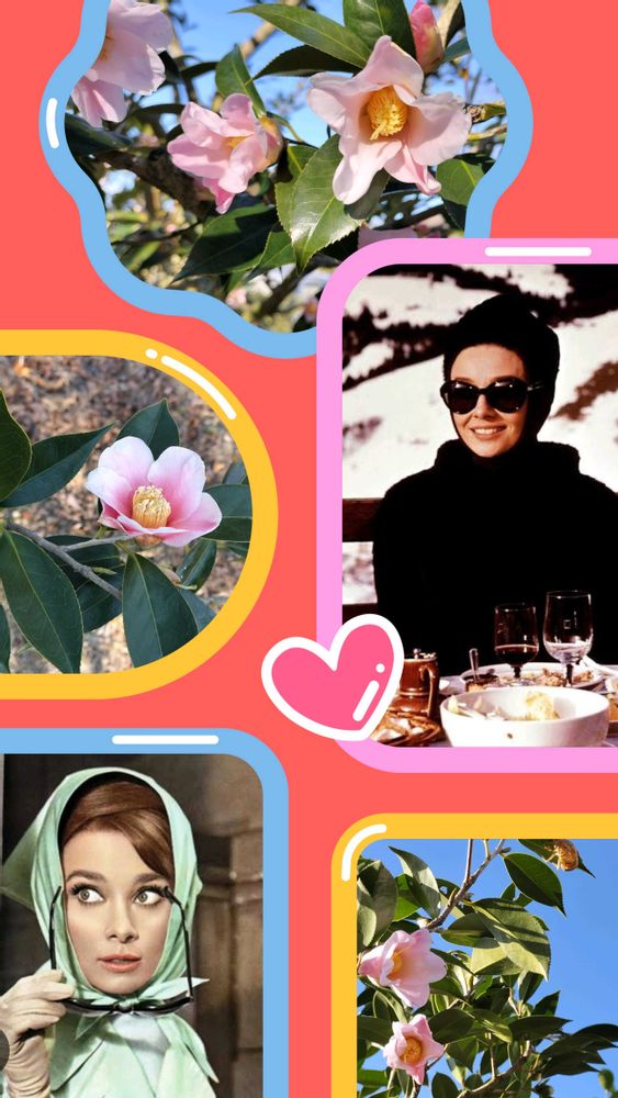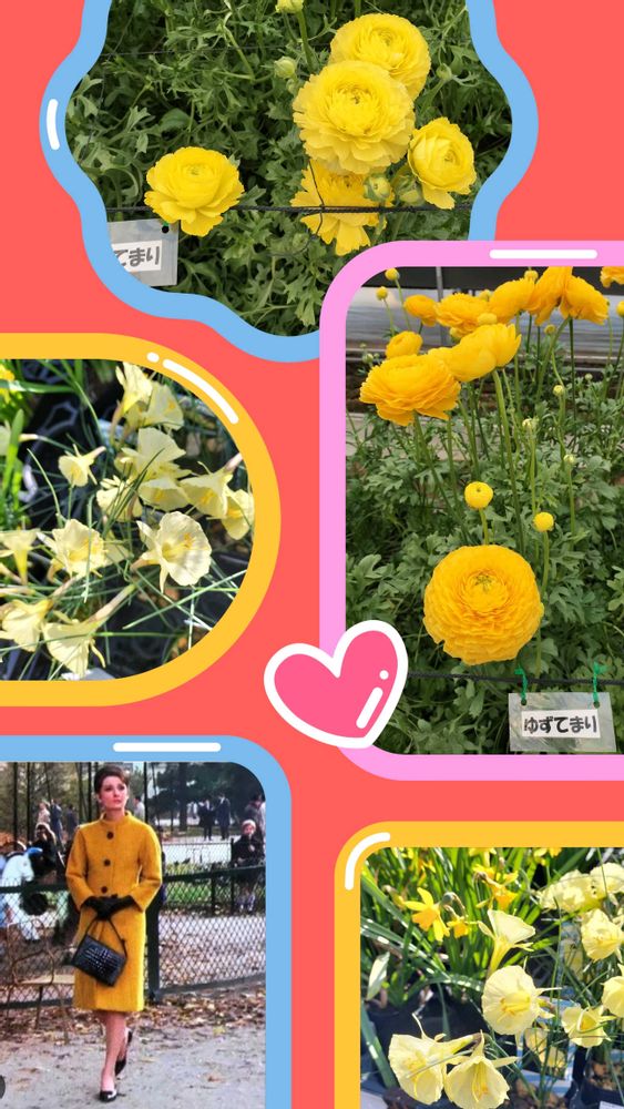 オードリーヘップバーンのコートと、花の色が一緒ですね💛