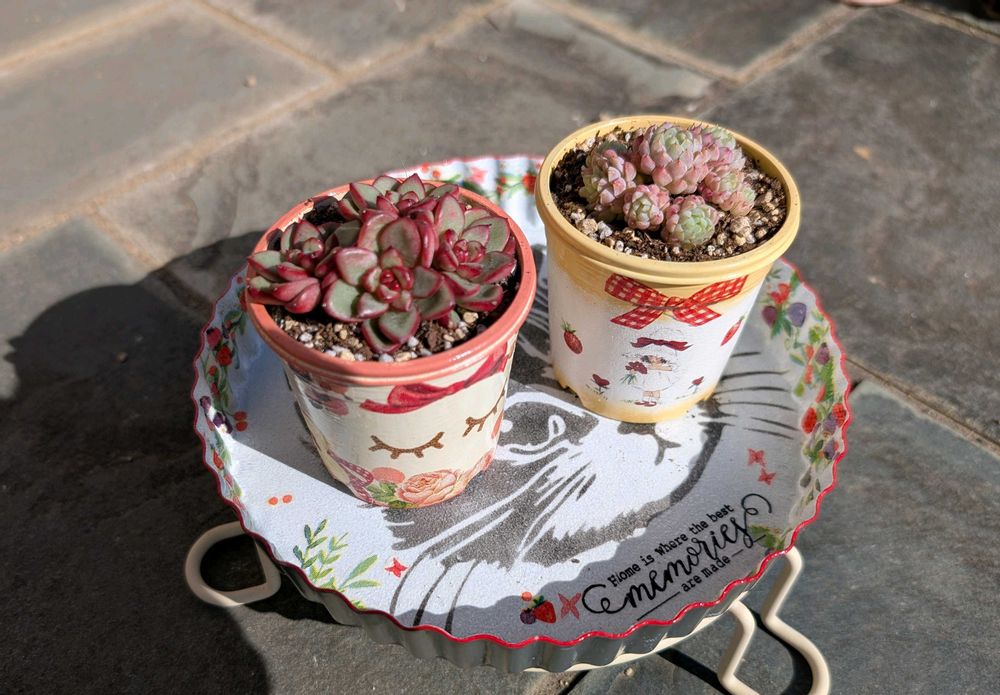 多肉の紅葉具合とリメ鉢の可愛さがマッチして増々の可愛さ🥰