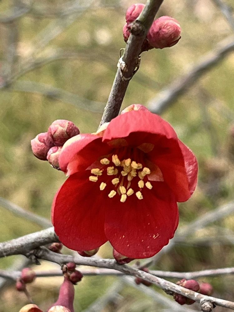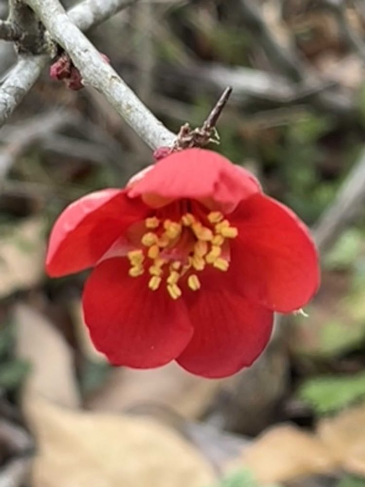 まだまだ春は遠いですが、植物園では❤️ボケが数輪咲いていました😊