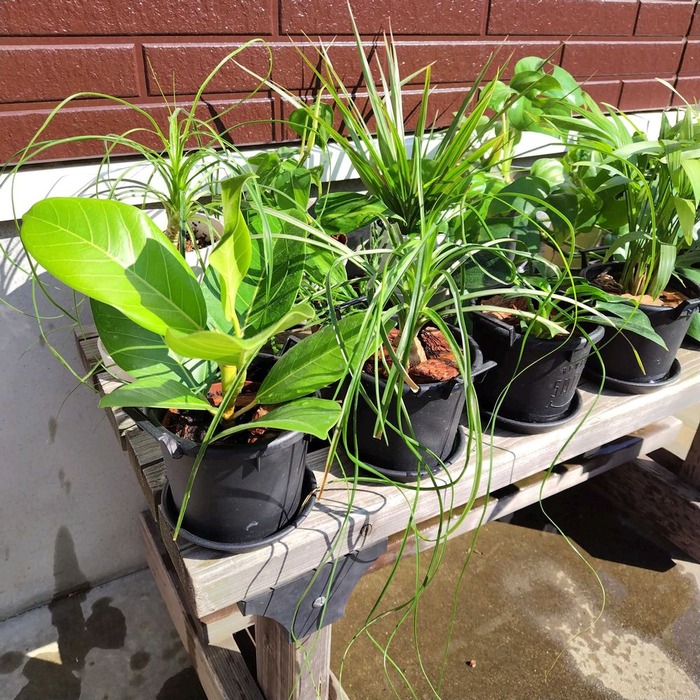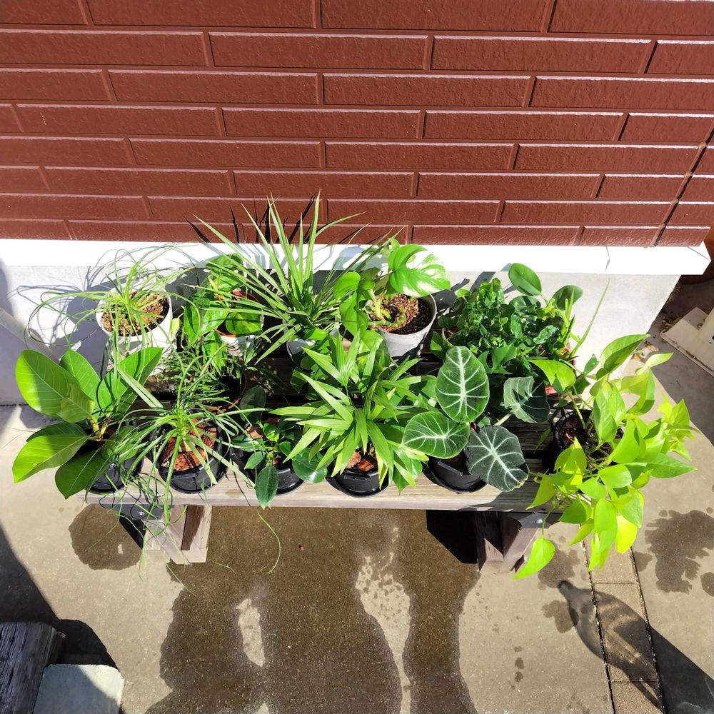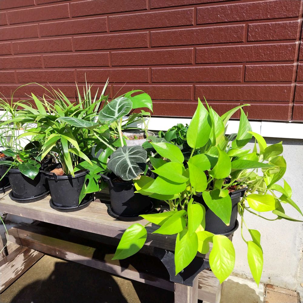 風もなく暖かい今日を利用してお部屋の日差しが当たらない場所に置かれた小さな観葉植物をまとめて外に出し日光浴中☀