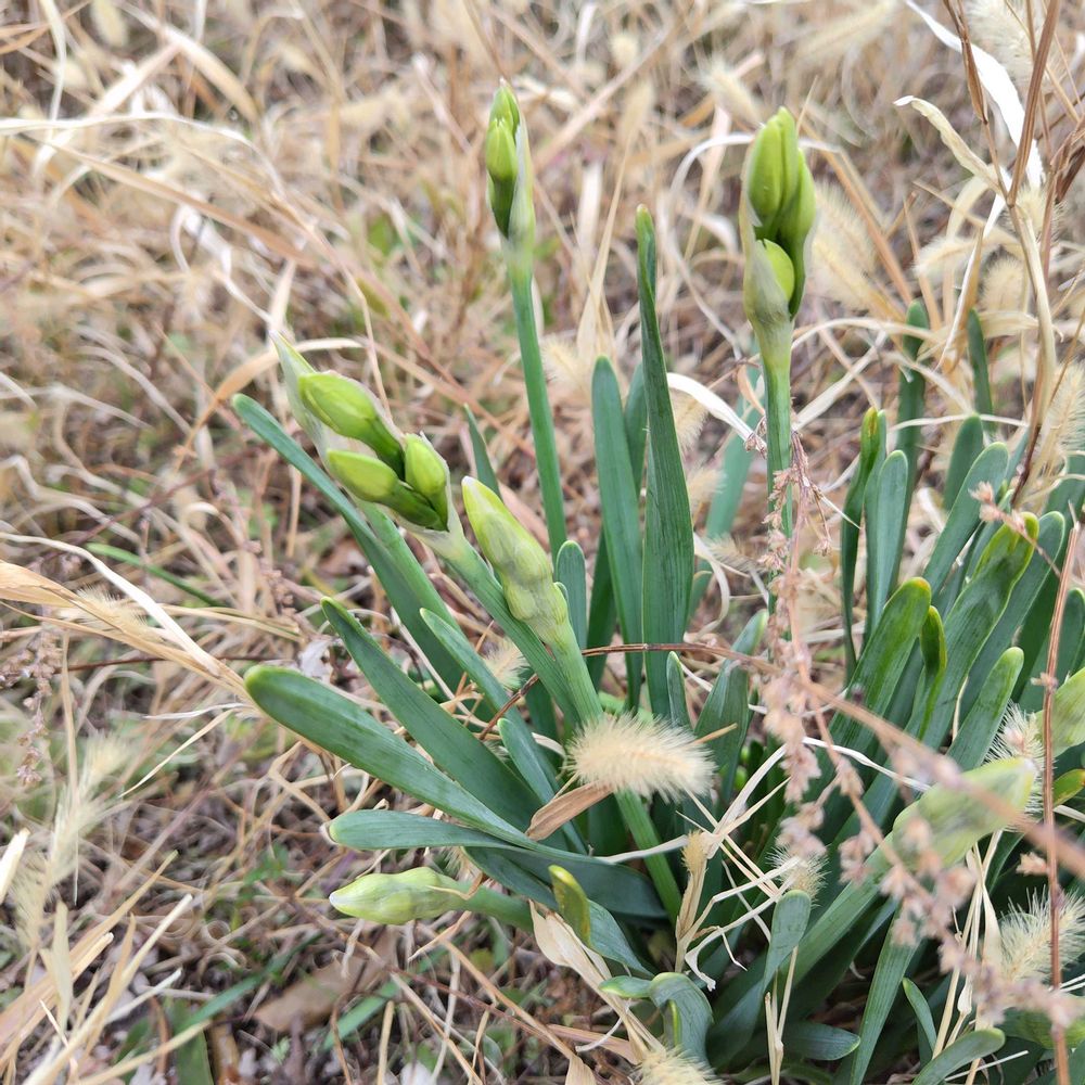 スイセンの蕾が沢山覗いていますね🙋🌿