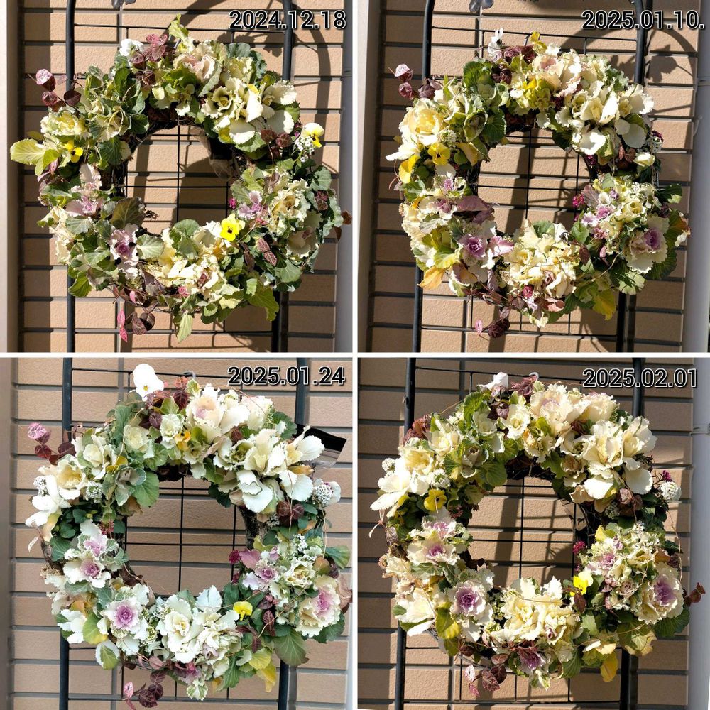 リース葉牡丹、デコボコも気にならないくらい華やかで素敵です🥰✨